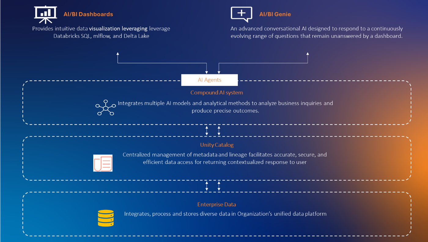 Databricks is gaining attention for revolutionizing analytics through unified platforms, in turn empowering self-service capabilities. AI/BI (Artificial Intelligence / Business Intelligence), built on the Lakehouse architecture, integrates generative AI with traditional BI to enable conversational data access, real-time insights, and auto-personalized dashboards.