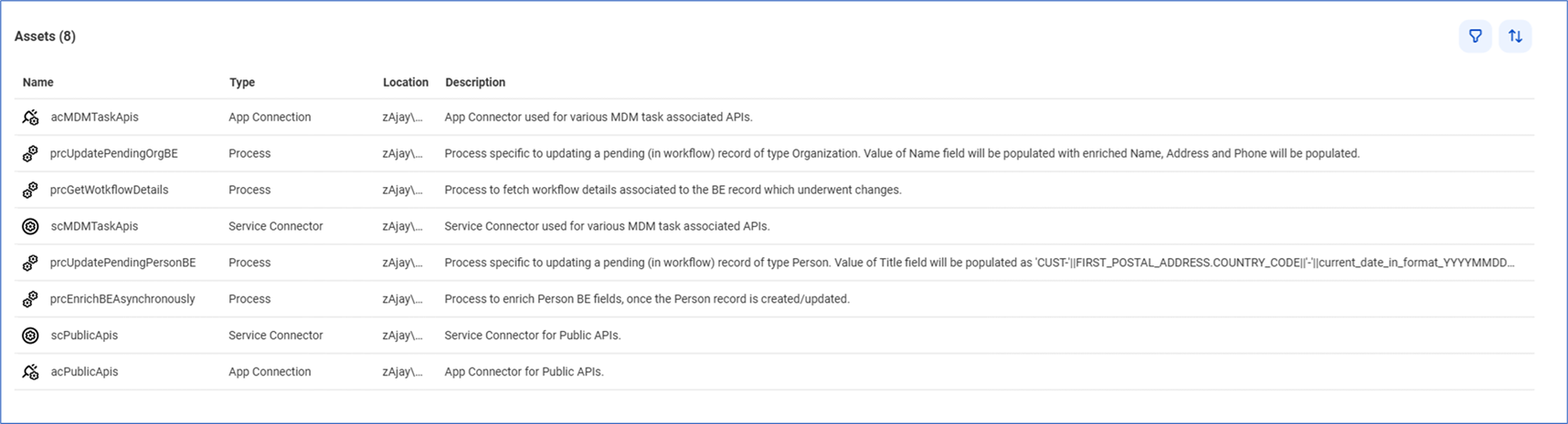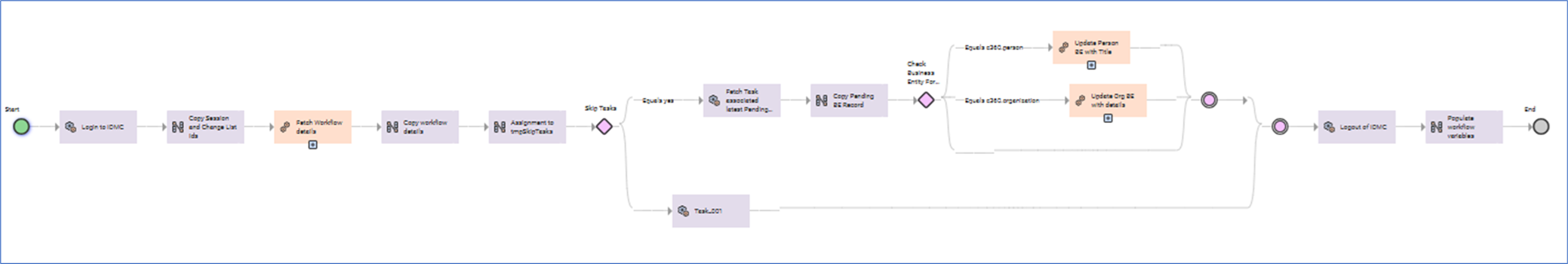 This modular design aligns with the best practices followed in scalable master data management systems, enabling smooth orchestration and governance. The main process is named as “prcEnrichBEAsynchronously” which starts whenever an associated business event occurs.