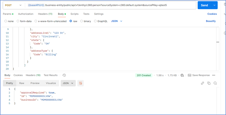 Creating a new person’s record for Ajay, with no address, using C360 service. Note that the title is not populated.