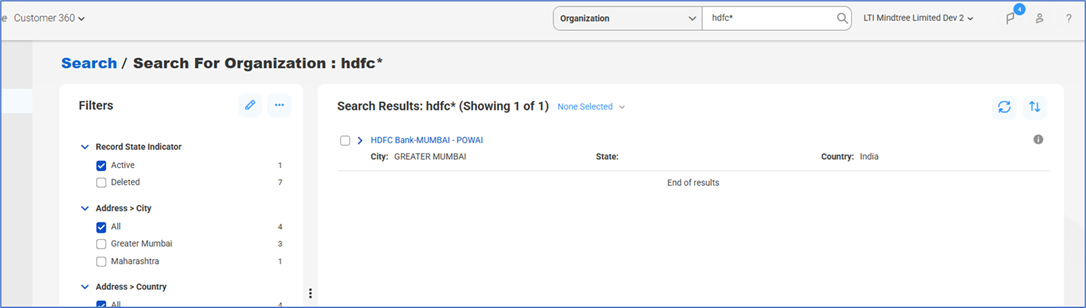 Figure 7: Customer ID based on India address | Source: LTIM IDMC instance