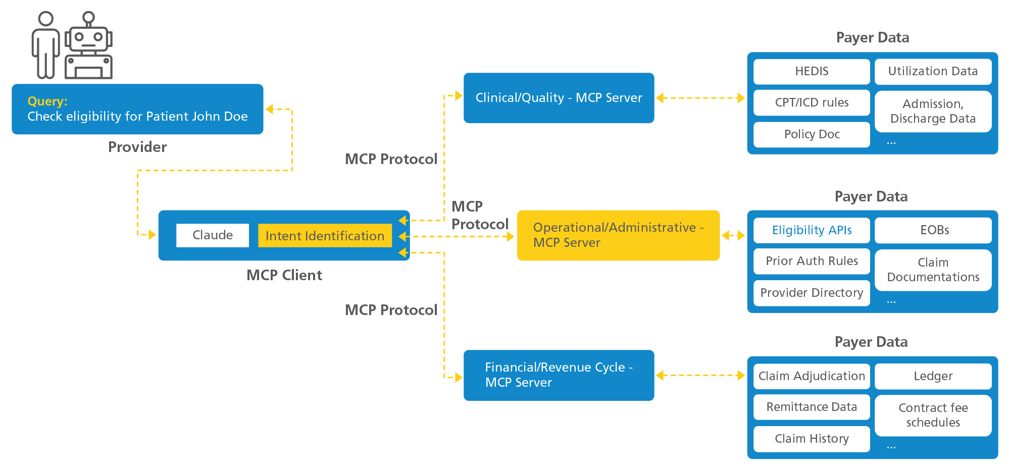 This is, however, beginning to change. Model Context Protocol (MCP) is an open standard developed by Anthropic to enable dynamic, context-rich, and standardized interactions between LLMs and organizational data. MCP introduces a structured, secure way to define, manage, and serve sensitive organizational data to agents and AI applications. It lets enterprises control what data is shared and how, when, and with whom. This brings governance and granularity to AI workflows, enabling real-time decision-making without surrendering oversight. This article provides an industry perspective on how MCP capabilities can be utilized in the payer-provider agentic ecosystem, benefiting both parties.