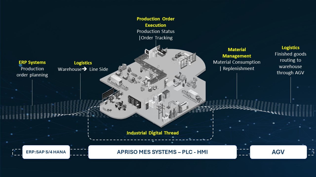 Figure 1: Industrial Digital Thread Integration with ERP, MES, and AGV Systems